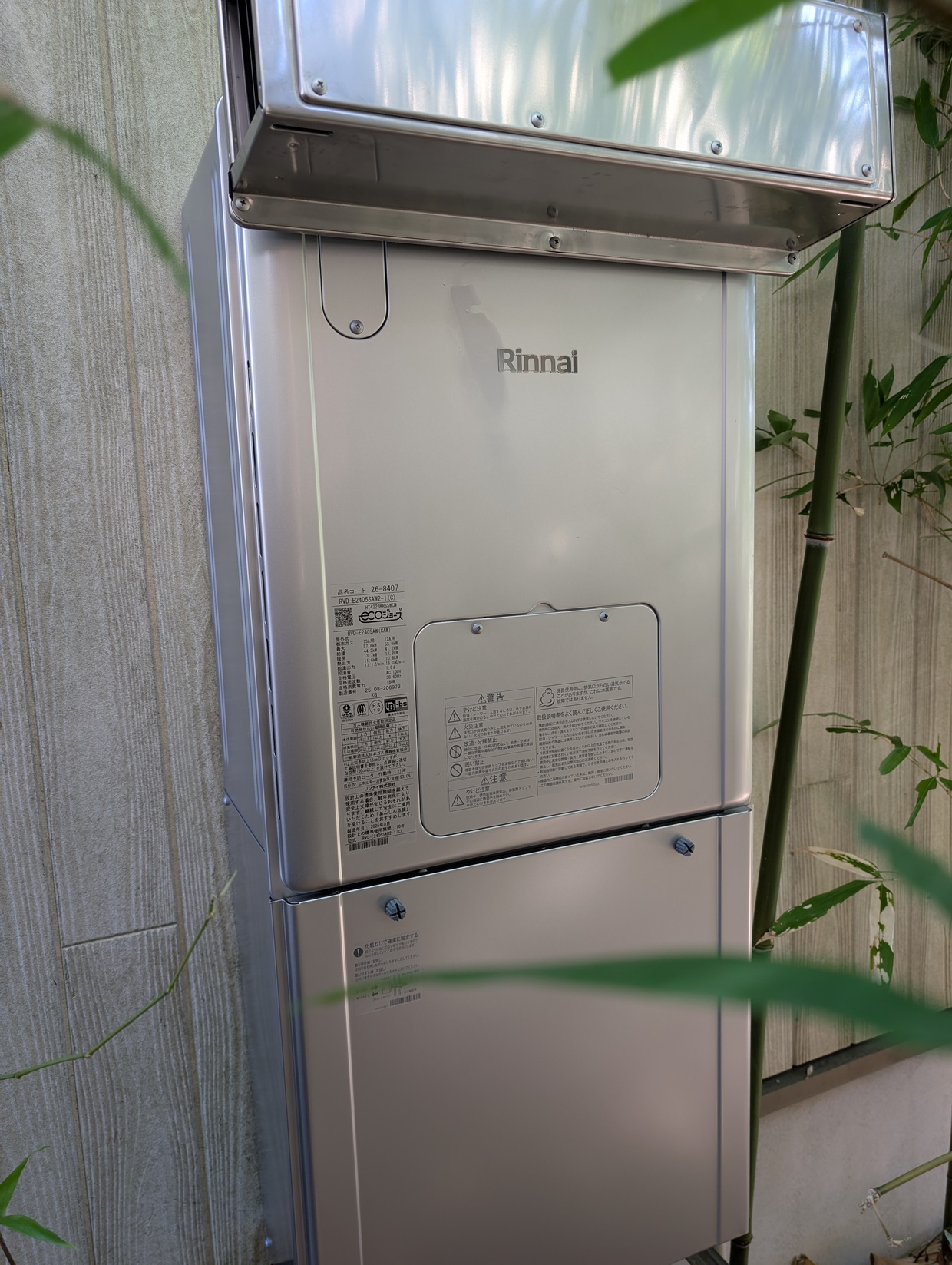 施工後の給湯器型番:リンナイ/RVD-E2405SAW2-1(C)