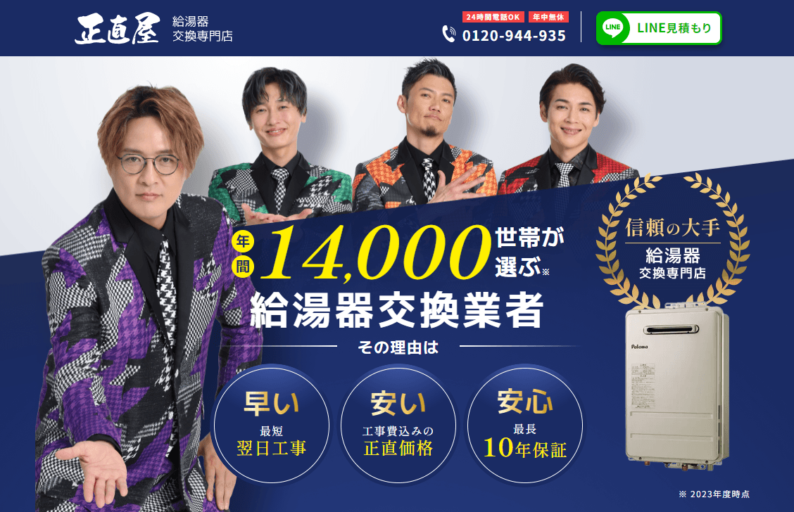 正直屋は、ガス給湯器・エコキュート交換を専門に行う業者です。