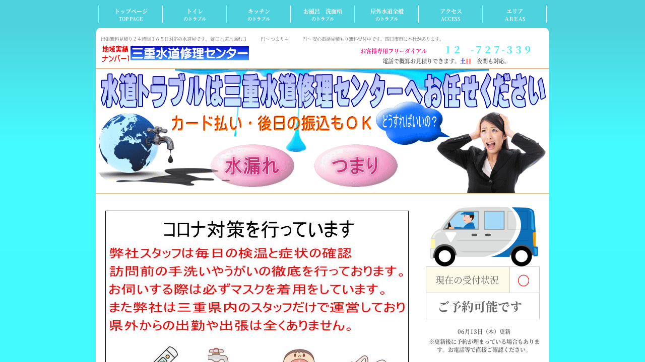 三重県内に複数拠点を持つ三重水道修理センターは、名張市・伊賀市にも出張所を構え、地域密着型のサービスを提供してもらえます。迅速な対応を心がけており、緊急時のトラブルにも迅速に対応可能です。お困りの際は、まずはお気軽に相談してみましょう。