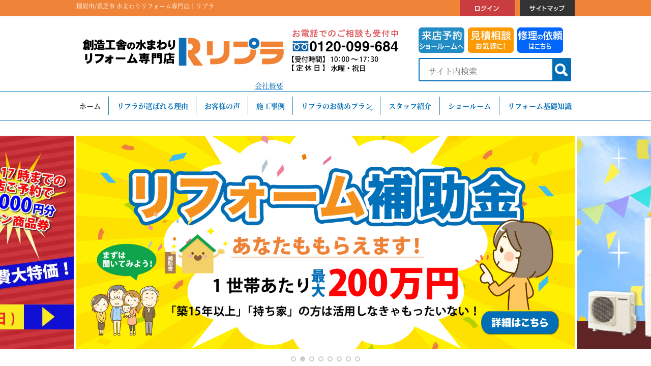 「創造工舎(リプラ 橿原店)」は、奈良県橿原市・香芝市を中心に、地域密着で水まわりリフォームを専門とする会社です。 創業から90年以上の実績と豊富な経験を持つ、給湯器のプロフェッショナル集団です。 お客様一人ひとりのニーズに合わせた最適なプランをご提案し、丁寧で安心できる施工を提供してもらえます。 ショールームには給湯器が28台展示されており、実際に見て触れて比較検討できます。 水まわりのリフォームでお困りの際は、ぜひ相談してみましょう。