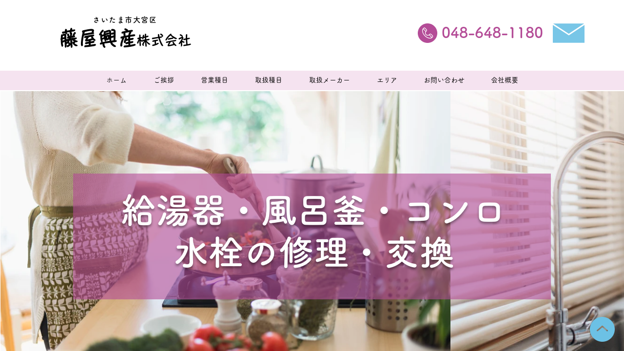 藤屋興産株式会社は、さいたま市大宮区で長年地域に根差した給湯器の販売・施工・修理を手がけています。給湯器、風呂釜、コンロなど、家庭のキッチンやお風呂に関するお困り事を、安心と丁寧な対応で解決してもらえます。見積もりは無料です。 地元密着で迅速な対応と、お客様に最適な機器のご提案を心掛けています。ガス・電気・水の削減に役立つ省エネ機器の提案も可能です。 「お風呂のお湯が熱くならない」「シャワーが使いにくい」「蛇口から水が漏れる」など、どんな小さなことでもお気軽に相談してみましょう。