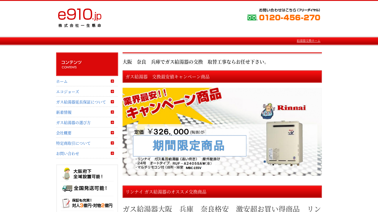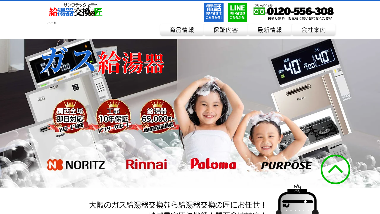 給湯器本体と標準取付工事費込みで、なんと39,000円(税抜)という驚きの価格を実現している。大阪・奈良・和歌山を中心に、地域密着型のサービスを提供している。