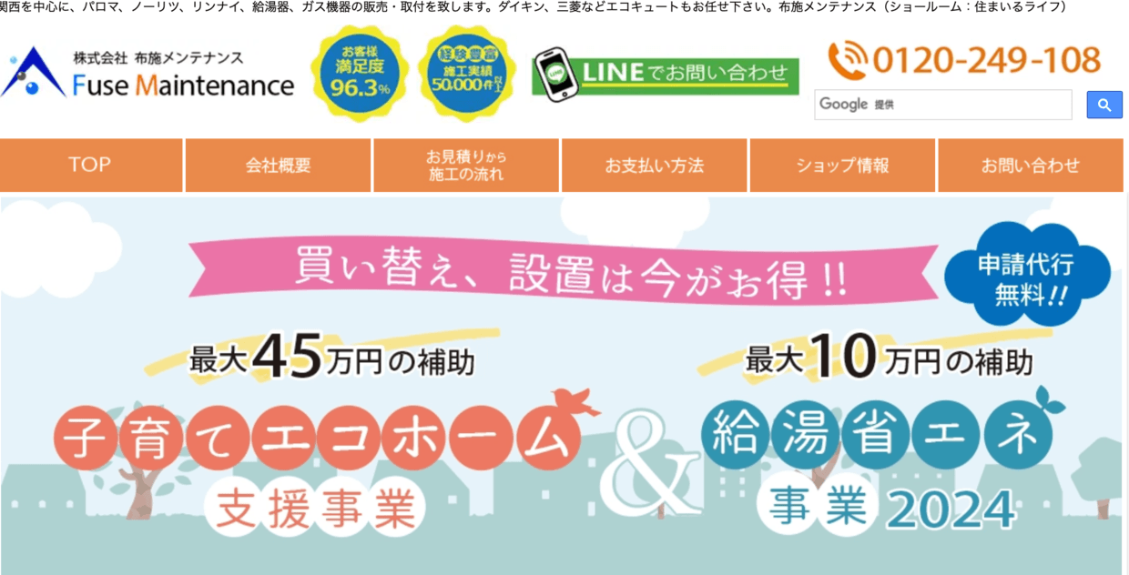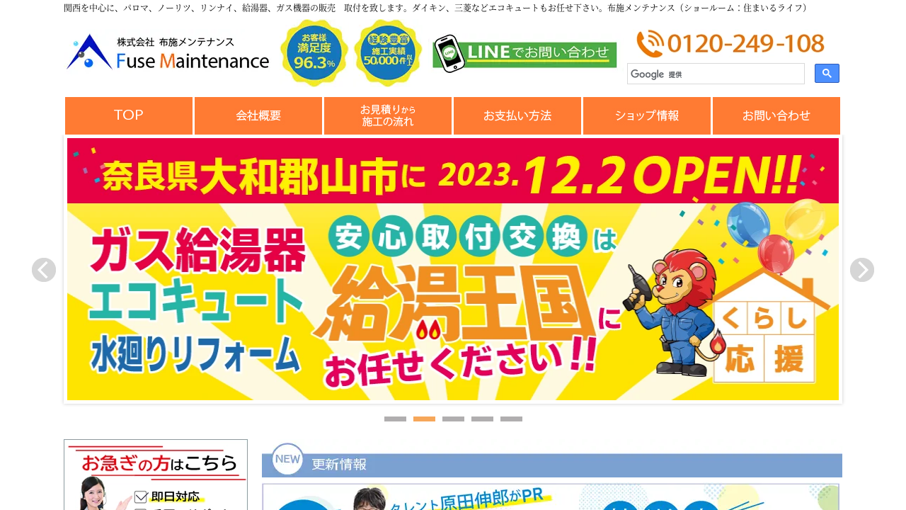 布施メンテナンスは、関西を中心に、給湯器、ガス機器の販売・取付やキッチン・トイレなど水廻りのリフォームを行う業者。