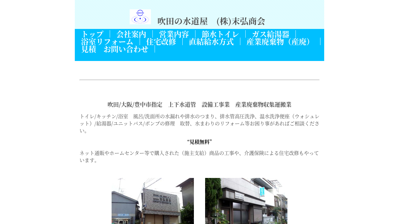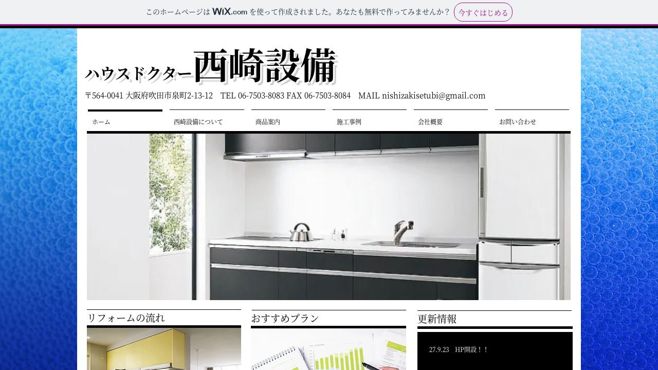 ![]() | 日本、〒564-0041 大阪府吹田市泉町2丁目13−12 水道局指定工事店 西崎設備 | 不明 | - | - | |