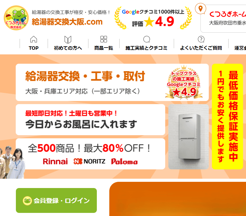 給湯パンダは、商品割引率が業界トップクラスの給湯器の交換・修理を専門としている業者です。
