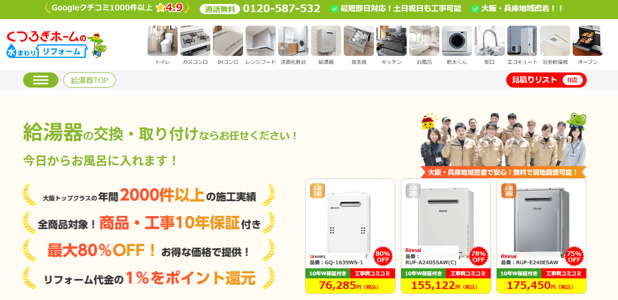 まずは、新大阪で相談と見積もりが無料で、かつ急な依頼でも対応してくれる給湯器交換業者3社を比較してみましょう。
