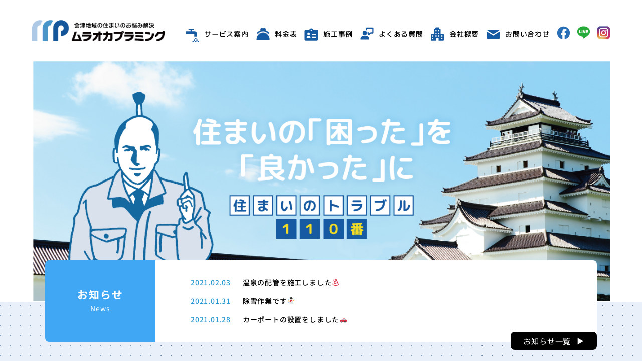 会津地方(喜多方市、会津若松市、会津坂下町、会津美里町、湯川町、猪苗代町、会津田島町、郡山市)に対応している。地域密着型の業者なので、迅速な対応が期待できる。