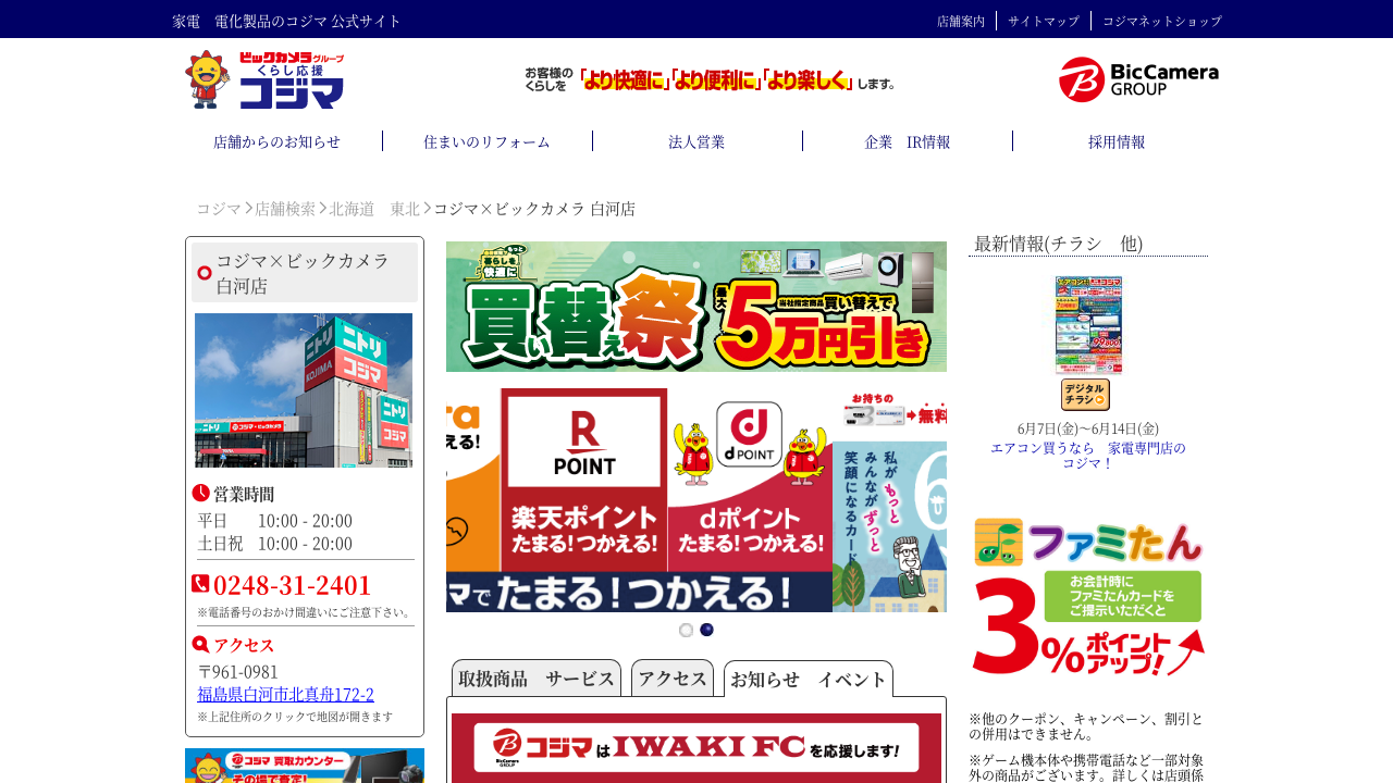 ![]() | 日本、〒961-0856 福島県白河市新白河1丁目1丁目39 | - | 不明 | 0120-248-434 | |