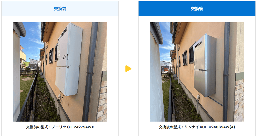 | 交換後の型式 | ノーリツ GT-2460SAWX-2BL |