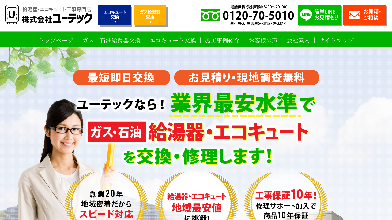 「給湯器駆けつけ隊 ミズテック」は、豊富な実績と、対応のスピーディさが強みの給湯器業者です。