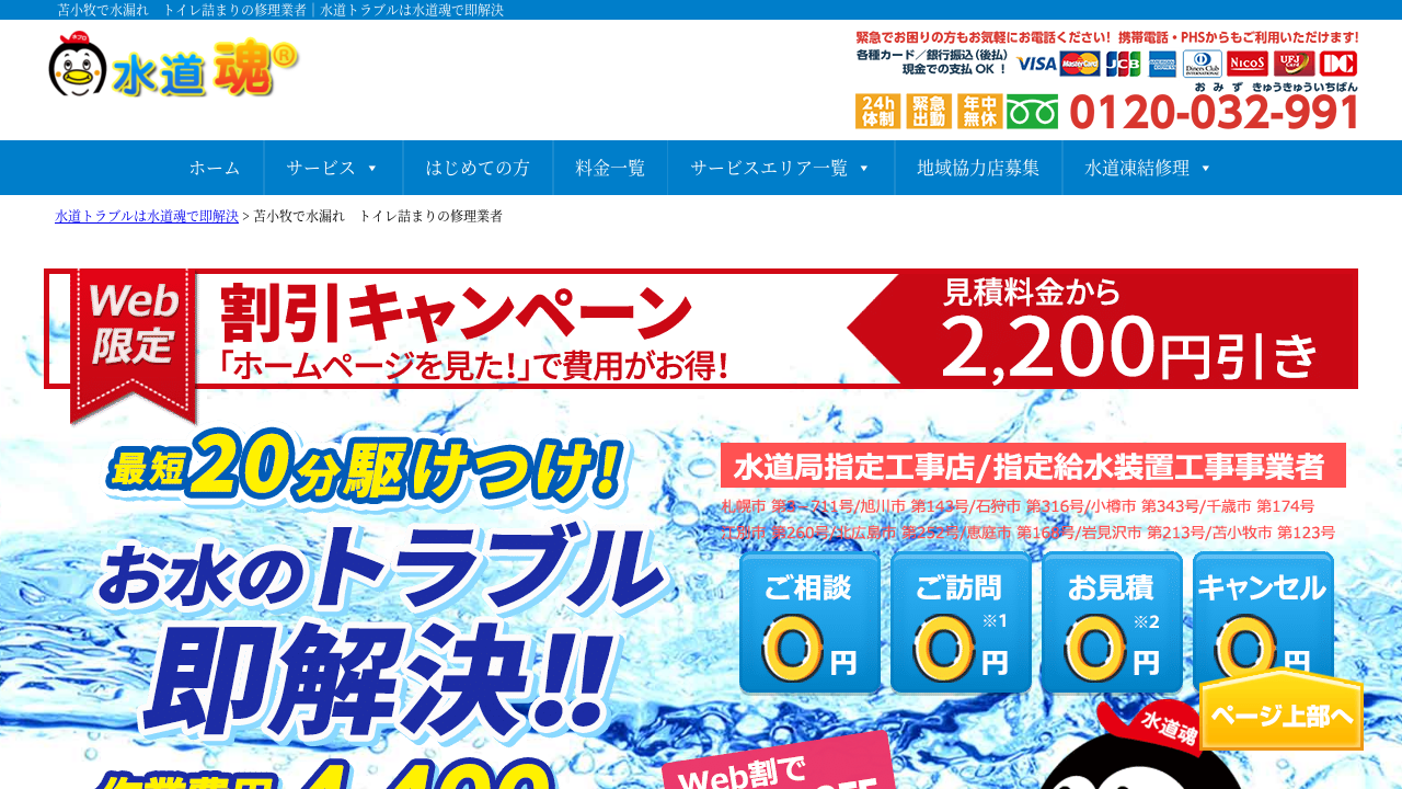 水道魂-苫小牧店|苫小牧トイレつまり水漏れ修理詳しく見る >