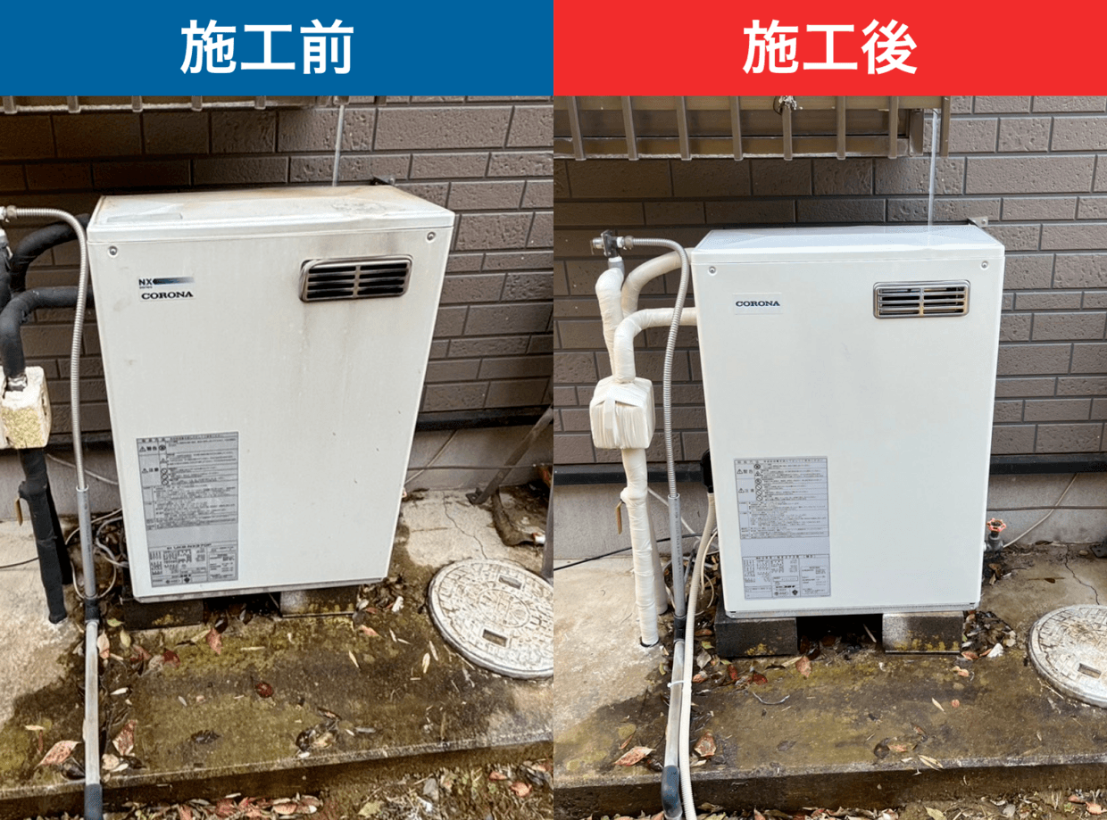 この後に新しい給湯器の設置作業が行われました。