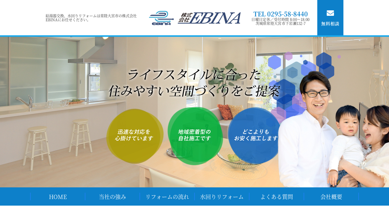 | 取り扱いメーカー | ガス給湯器(ノーリツ・リンナイ・パロマ等) エコキュート(三菱電機・ダイキン・コロナ等) |