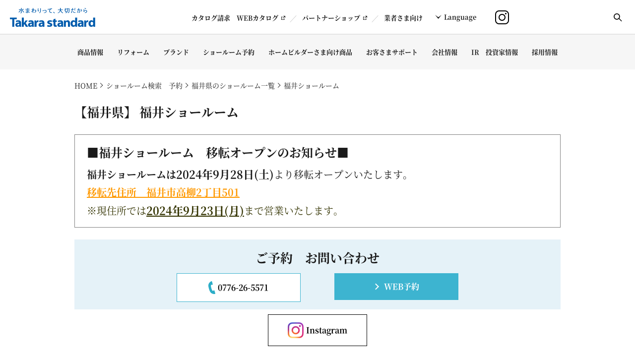 タカラスタンダード 福井ショールーム詳しく見る >