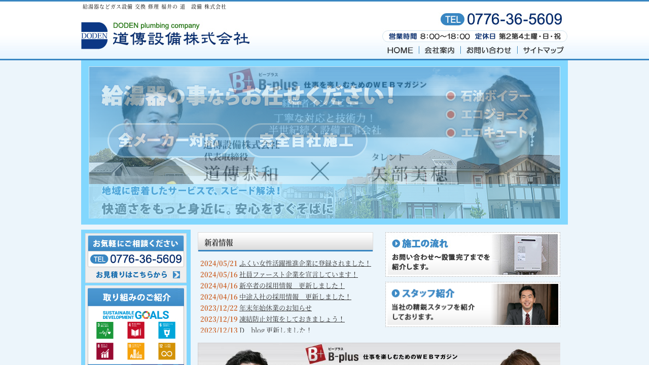 道傳設備株式会社は、福井県で50年以上の実績を持つ給湯器専門業者です。長年の経験と豊富な知識で、お客様のニーズに合わせた最適な給湯器を提案してもらえます。地域密着で、アフターフォローも万全です。
