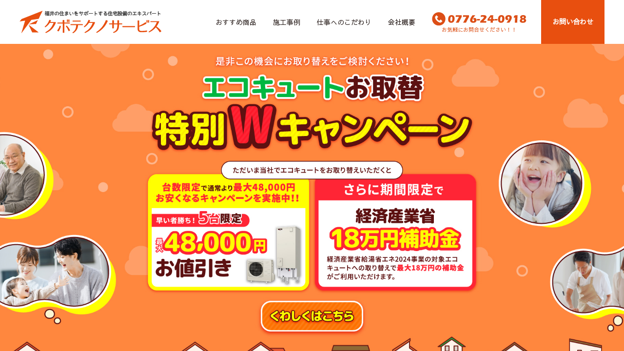 有限会社クボテクノサービスは、福井県福井市に拠点を置き、長年地域に根ざした営業を行っています。パッケージエアコン工事や空調工事など、幅広い業務を手がけてきた実績があり、給湯器に関しても信頼と安心を提供してもらえます。地域密着型のサービスで、迅速な対応と丁寧な施工が魅力です。