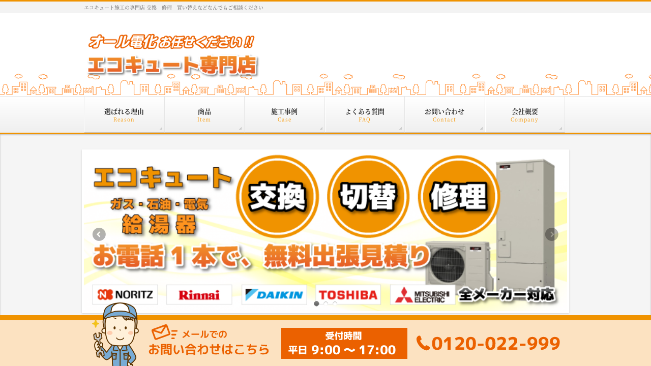 | 取り扱いメーカー | ガス給湯器(ノーリツ・リンナイ・パロマ等) エコキュート(三菱電機・ダイキン・コロナ等) |
