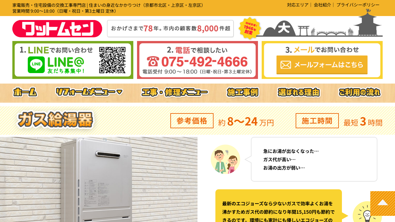 有限会社 テクノワークス-給湯器-交換-取替-設置-工事‐京都‐滋賀詳しく見る >