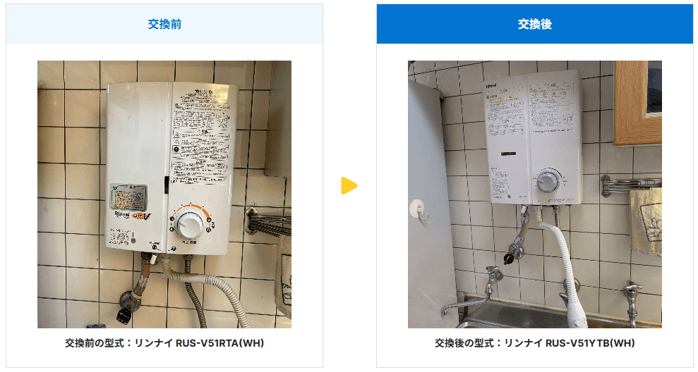 | 交換後の型式 | リンナイ RUS-V51YTB(WH) |