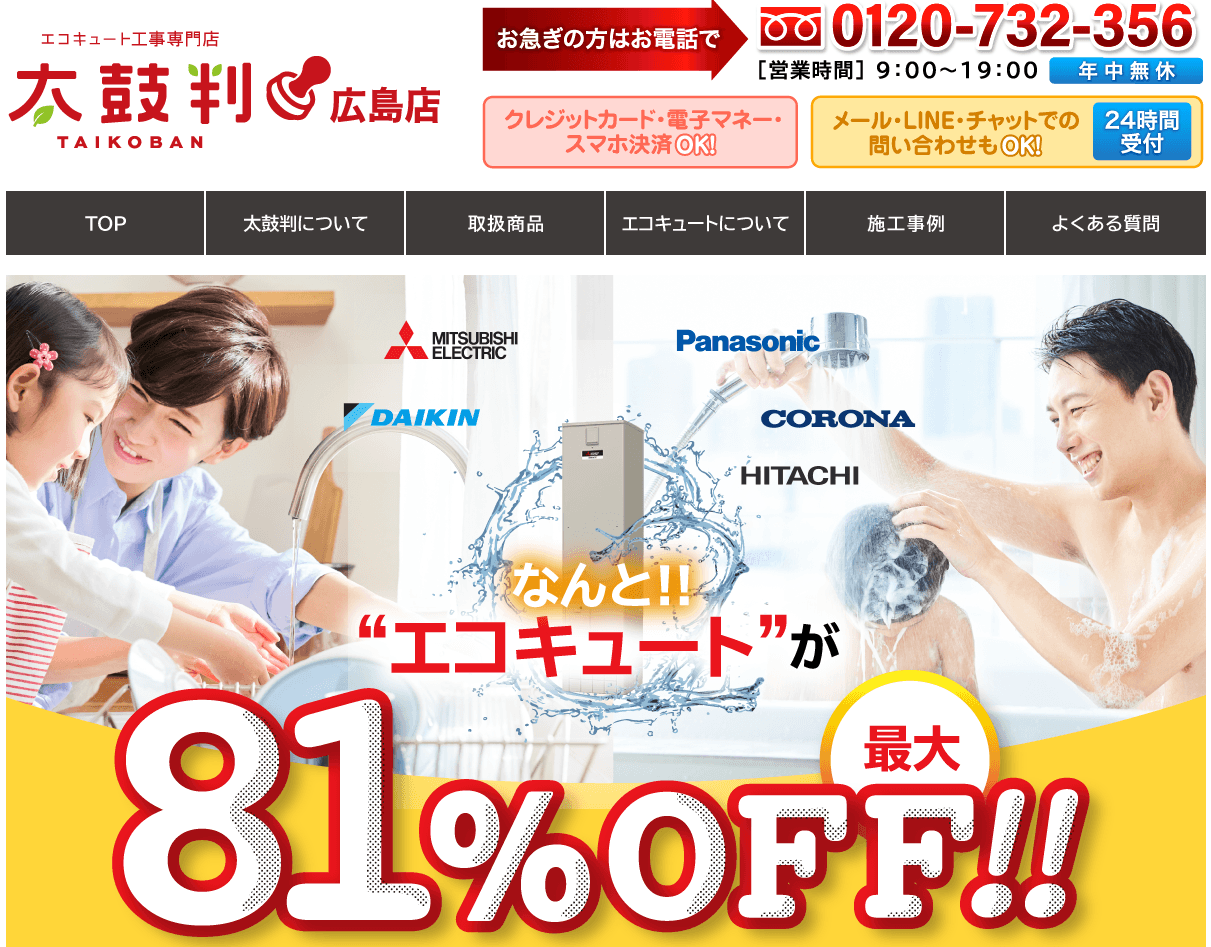 広告費や委託費をカットすることで、この割引を実現しており、依頼者へリーズナブルな価格で給湯器やエコキュートを提供中です。