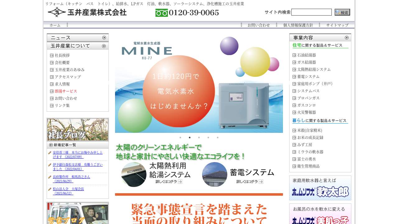 給湯器はもちろんのこと、エコキュート、太陽光発電、ボイラー、風呂釜、ガス給湯器、電気温水器など、幅広い水回り設備を取り扱っている。オール電化へのリフォームも得意とする。