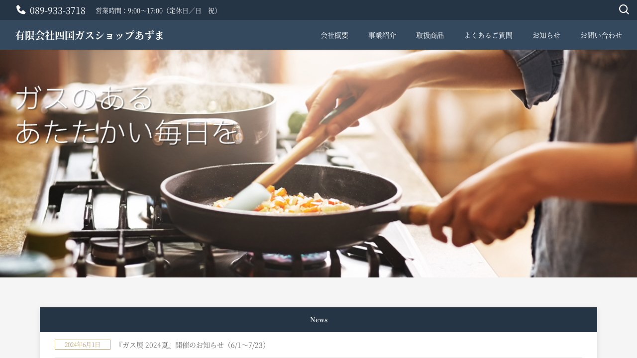 有限会社四国ガスショップあずまは、都市ガスをご使用のお客さまへ、ガス器具の販売・修理、新規取付、取替、撤去にともなうガス配管工事など、幅広いサービスを提供してもらえます。都市ガスに関する豊富な知識と経験を持つため、安心して任せられる点が魅力です。