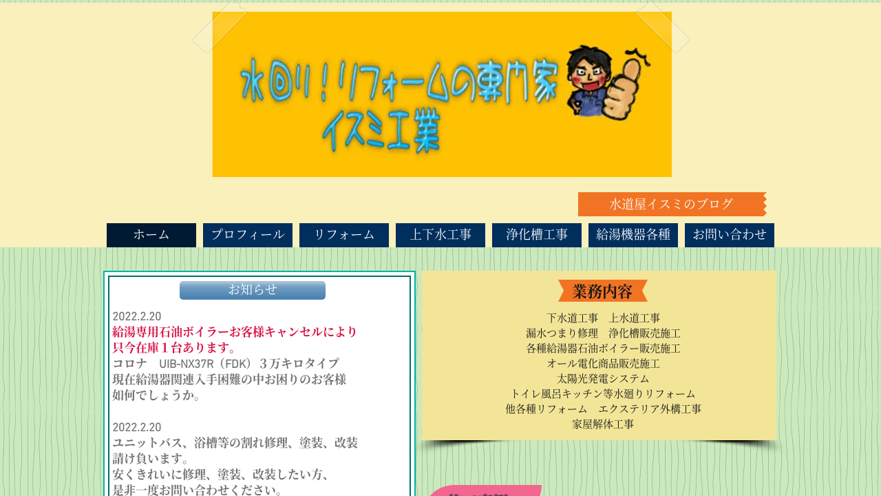 | 取り扱いメーカー | ガス給湯器(ノーリツ・リンナイ・パロマ等) エコキュート(三菱電機・ダイキン・コロナ等) |