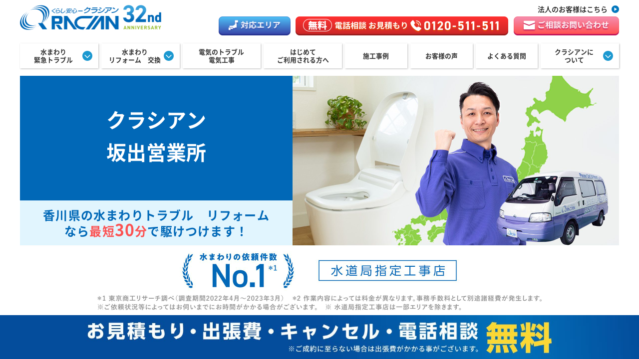 クラシアン高松営業所は、香川県広域水道企業団から指定を受けている業者です。これは、高い技術力と知識、そして信頼性を備えていることの証です。水回りのトラブルは、安心して任せられるでしょう。