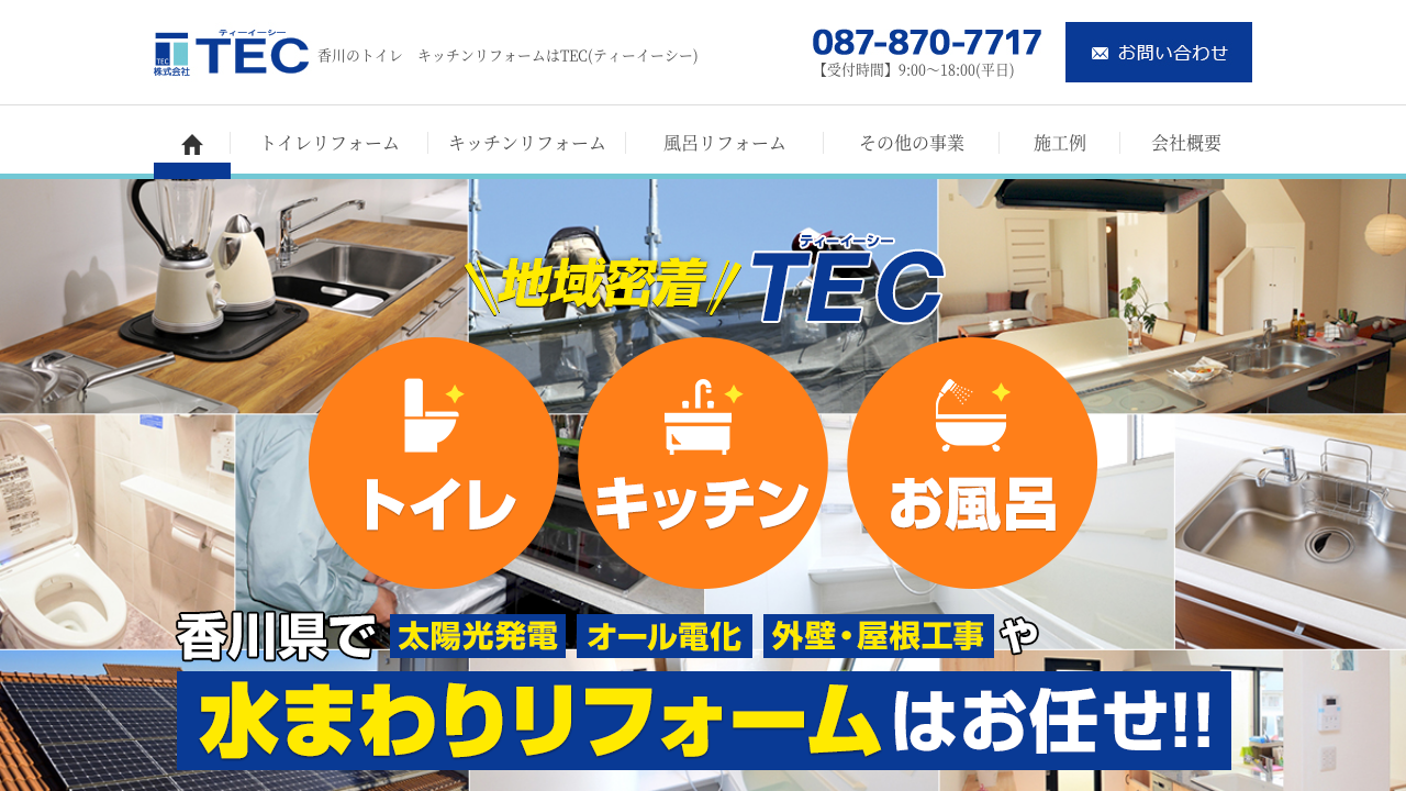 水回りリフォームだけでなく、屋根・外壁リフォーム、オール電化、太陽光発電など、住宅に関する様々なサービスを網羅している。小さな修理から全面リフォームまで、トータルでサポートしてくれる。
